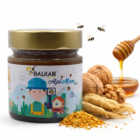 Balkan Bal Evi ApiMan Mix, doğal arı ürünlerinin özel bir karışımı ile hazırlanan besleyici bir üründür. Doğal bal bazlı bu karışım; polen ve çeşitli arı ürünlerinin uyumlu şekilde bir araya getirilmesiyle hazırlanır. Doğal içeriği ve yoğun aromasıyla öne çıkan ApiMan Mix, günlük tüketim için tercih edilen özel arı ürünleri karışımlarından biridir.
