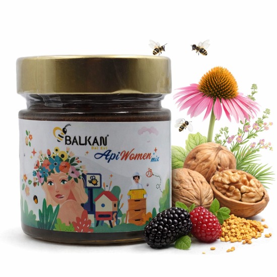 Balkan Bal Evi ApiWomen Mix 330 gr, doğal arı ürünlerinin bir araya geldiği özel bir karışım olup doğallığı sofralara taşıyan özenle hazırlanmış bir üründür.